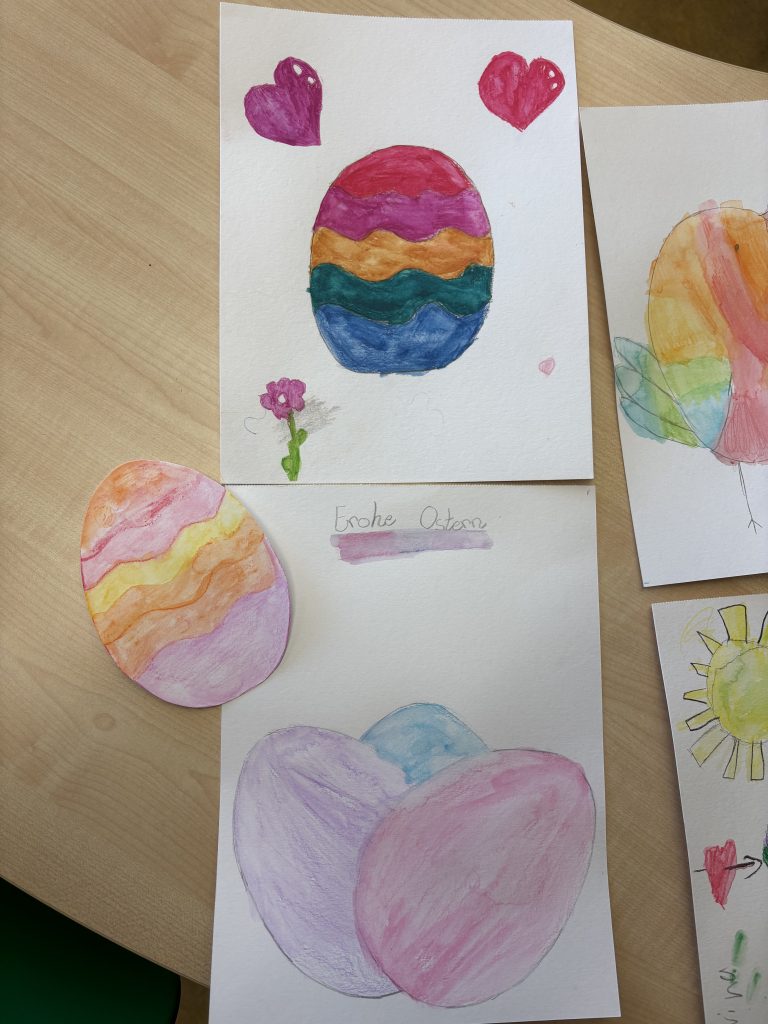 In der AG „Farbträume“ haben die Kinder mit Aquarellfarben gemalt. Jedes Kind durfte ein eigenes Motiv wählen. So sind viele bunte Bilder entstanden. Manche Kinder haben auch Osterbilder gemalt. Wir wünschen allen schöne Osterferien!