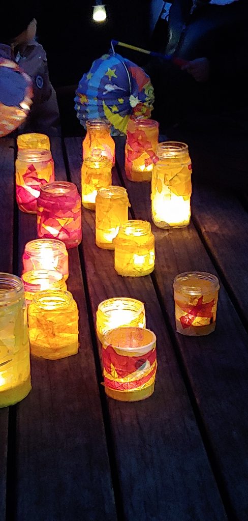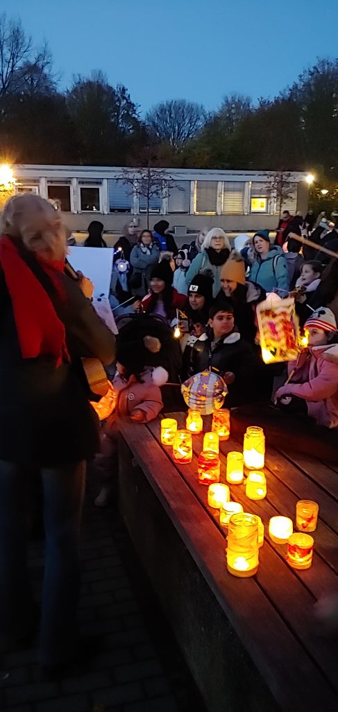 Eltern und Kinder der ersten Klassen haben in diesem Jahr ihre Laternen selbst gebastelt. Auf dem Schulhof haben wir uns zum gemeinsamen Singen getroffen. Nach einem Spaziergang durch das Viertel gab es aufgebackene Brezeln und Getränke auf dem Schulhof. Vielen Dank für die Initiative des Fördervereins und die vielen Helfer bei dieser Aktion! Der Erlös von 350 € geht in die Kasse des Fördervereins.