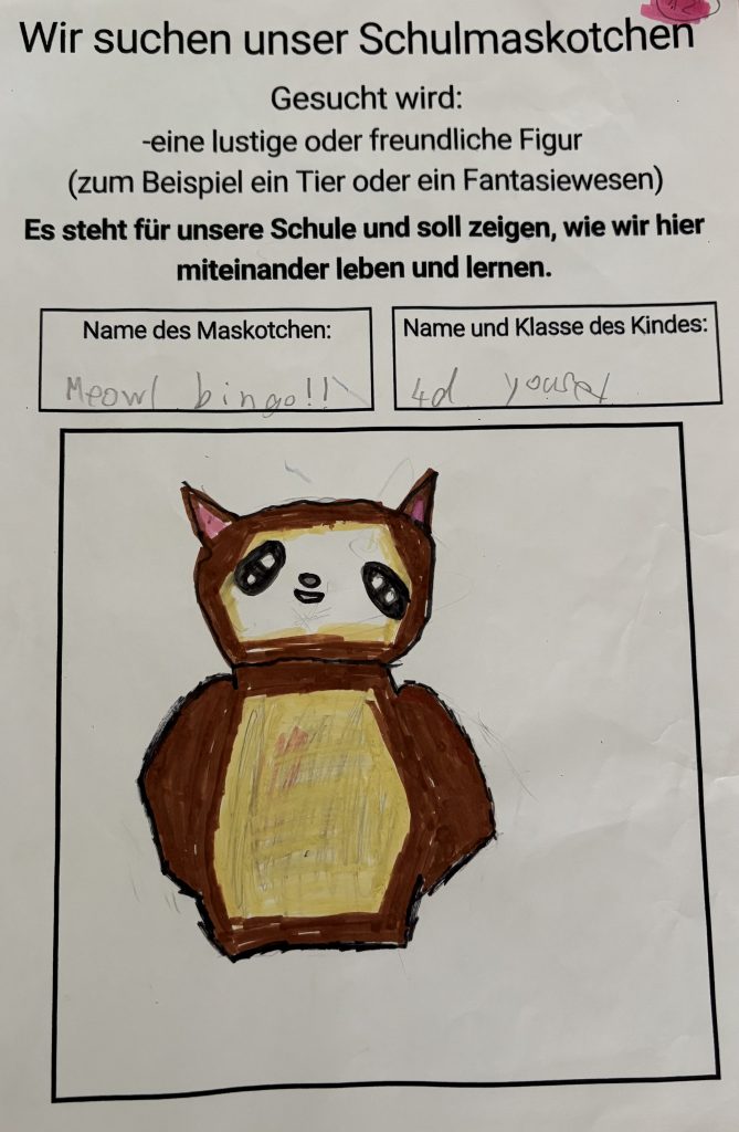 Im Schülerrat haben sich Kinder gewünscht, dass unsere Schule ein eigenes Maskottchen bekommen soll. Diesen Wunsch haben wir aufgegriffen und uns gemeinsam auf den Weg gemacht, ein tolles Schulmaskottchen zu finden.